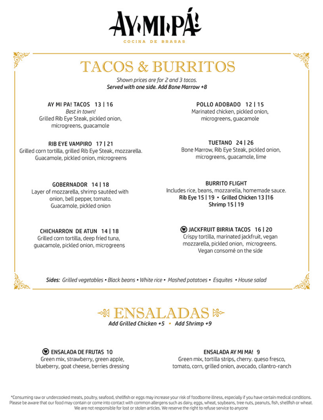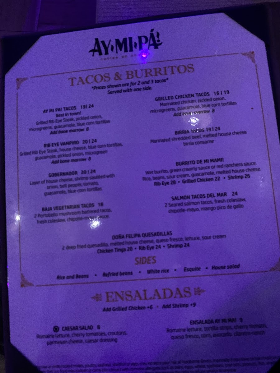 Ay Mi Pa specializes in mouthwatering Mexican fare, with popular offerings that will tantalize your taste buds. The menu includes a selection of enticing cocktails, such as the Carajillo, Espresso Martini, and Chocolate Martini, each priced at just $14.55. For those who wish to enjoy the ambiance while participating in the fun, you can also grab some merchandise or tickets to elevate your experience, with prices starting at $20.